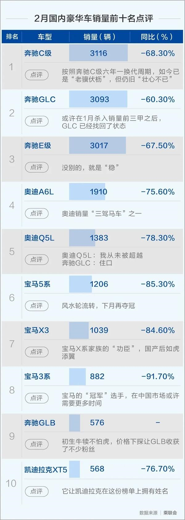2月,一直表现抢眼的豪华车市场也未能幸免。