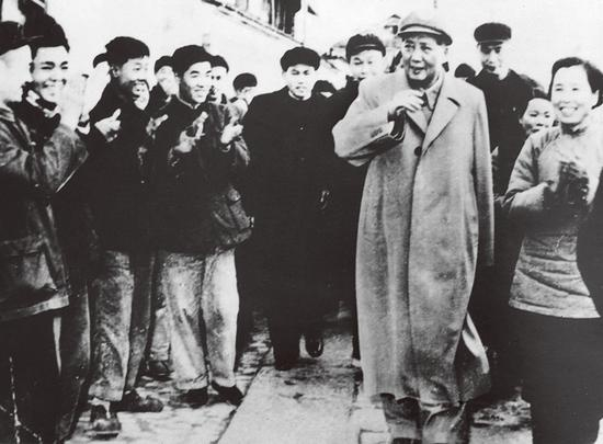 1958年1月5日,毛泽东同志来到杭州小营巷视察爱国卫生工作。在这里,他亲切地与居民谈心,肯定了杭州的卫生工作,极大地鼓舞了全国人民开展爱国卫生运动的热情。图为毛泽东同志视察小营巷的场景。