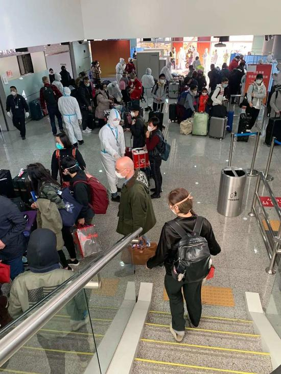 一些人全副武装,已经做好不吃不喝的准备,即将踏上回国的旅程,一些人已经辗转回国,幸运落地,经过层层检查,开始按流程隔离。