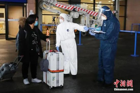 在南京禄口机场,工作人员对有疫情严重国家行程史,体征异常人员及其密切接触者,会立刻组织送医或集中医学观察等措施;对其他无症状者,通知旅客住地所在各区安排专人专车集中接送,防止境外来客乘坐公共交通离开机场。