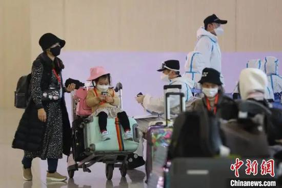 资料图:在信息申报后,入境旅客按照不同目的地进行分别对接,离开机场。泱波 摄