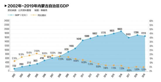 不过,随着全国经济增速放缓,煤炭价格下跌,内蒙古快速跌入低潮。内蒙古的经济增长迅速从全国前列,变成全国倒数。经济高开低走,大起大落得让人瞠目结舌。