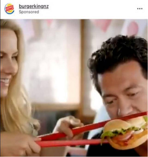 据报道, 2019年4月,仅仅在意大利奢侈品牌杜嘉班纳以一则蹩脚的广告创意“起筷吃饭”招致中国民众的反感与抵制不到5个月的时间后,汉堡王在新西兰投放的一则网络广告中再次贬低东方的筷子文化,招致亚裔强烈不满。