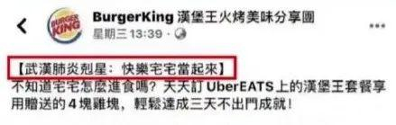 事件起因于3月25日,名为“BurgerKing漢堡王火烤美味分享團”的社交媒体账号发布一条营销信息,将一款套餐称为“武汉肺炎克星”。据了解,该账号主体为中国台北的一家汉堡王门店。