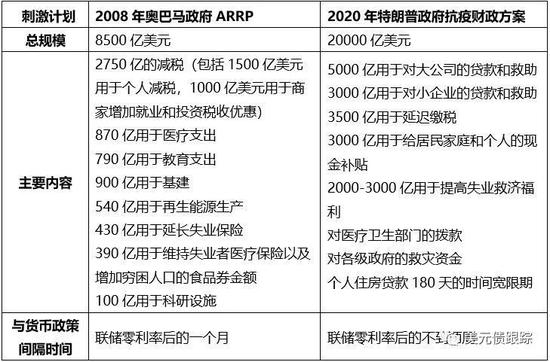再来看规模和具体内容。2008年的ARRP计划和此次2020年财政刺激方案的组成对比,就是下面这张表格: