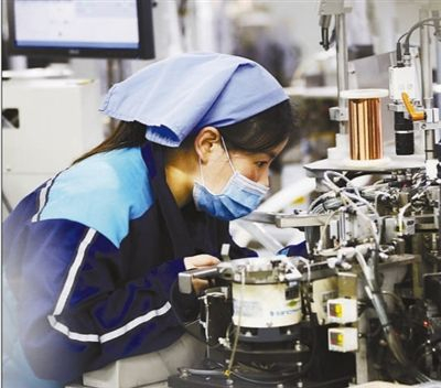 江苏泗洪县以奖代补鼓励企业研发创新。图为4月1日,电子产品企业工人在生产出口的高性能电感器。