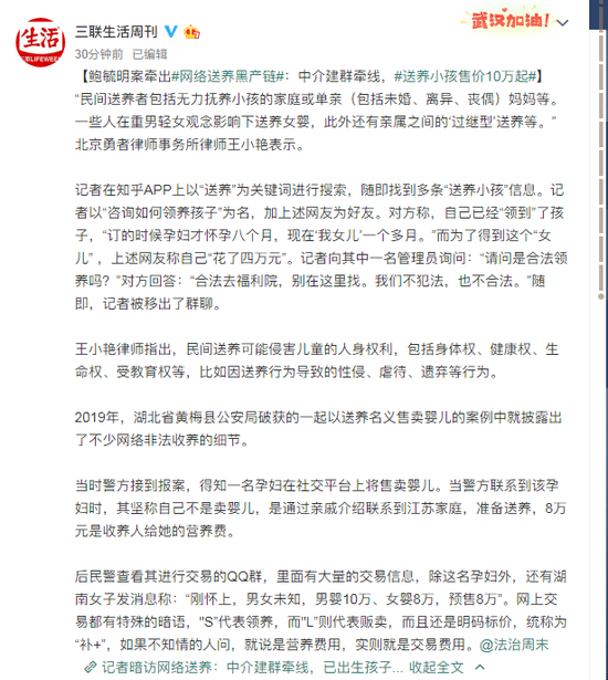 原标题:鲍毓明案牵出#网络送养黑产链#:中介建群牵线,#送养小孩售价10万起#