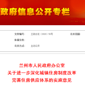 为进一步深化城镇住房制度改革,完善住房供应体系,构建“租购并举”的供应制度,坚持“房子是用来住的、不是用来炒的”定位,规范房地产市场,促进兰州市房地产市场平稳健康有序发展,结合兰州市实际,兰州市人民政府办公室制定该实施意见。