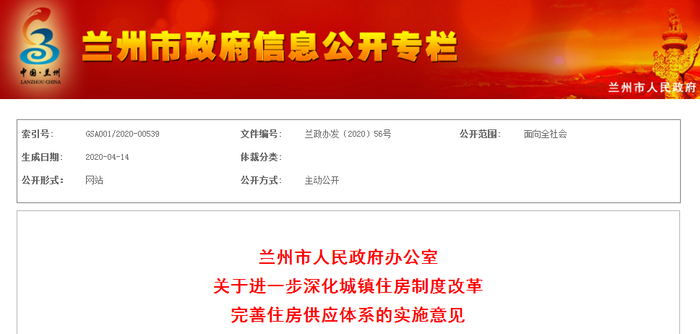 日前,兰州市人民政府办公室发布《关于进一步深化城镇住房制度改革完善住房供应体系的实施意见》(下文简称《实施意见》),《实施意见》指出,因域施策、精准调控,根据市场运行情况,调整商业地产贷款的首付款比例,由现行的70%调整为50%。