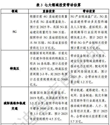 此后,央视列出了“新基建”主要包括的七大领域:5G基建、特高压、城际高速铁路和城市轨道交通、新能源汽车充电桩、大数据中心、人工智能、工业互联网。