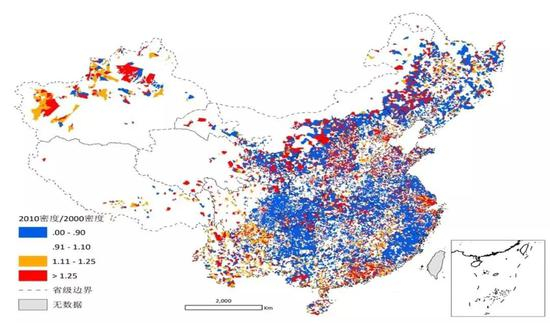 根据清华大学建筑学院特别研究员龙瀛的研究,在2000年到2010年间,全国有180个城市的人口在流失,三分之一的国土人口密度在下降。