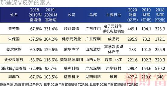 有6名富人,去年位于富人榜财富跌幅的前50名,今年,则逆行进入了财富涨幅的前50名。