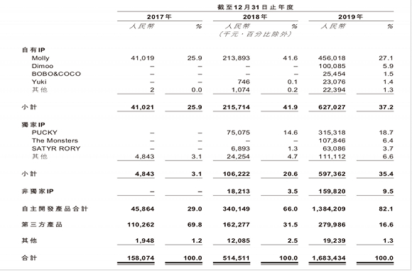 2017年-2019年,Molly分别占其总收益的25.9%、41.6%与27.1%,有所下滑,这或许是团队有意在加强自有IP的丰富度。