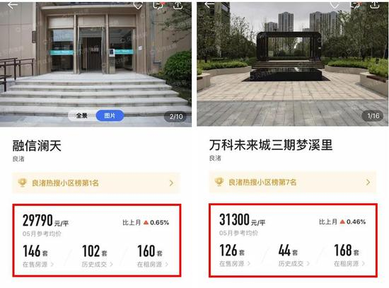 6月4日下午,中新经纬记者在贝壳找房APP上看到,该小区挂牌出售的房源有146套,占到总房源的36%,销售均价约2.9万元/平方米,且几乎都是毛坯状态。贝壳找房显示,该小区是杭州良渚热搜小区榜第1名,已经成交102套二手房。