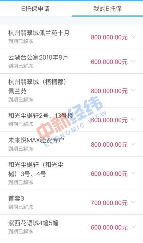 ▲郑娜摇号买房时冻结的首付款。