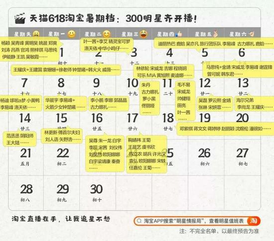 淘宝直播表示,5月27日明星直播名单公布当天,又有近百位明星在跟淘宝直播敲档期。不少明星和经纪人打来电话,询问如何加入淘宝直播,品牌、商家在问如何进明星的直播间等。