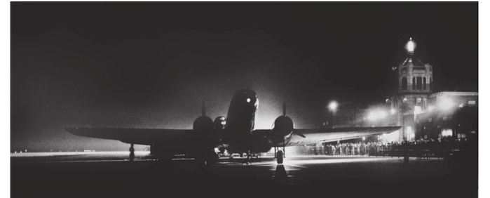 美国堪萨斯的一座机场,飞机可在夜间起降。这是环球航空公司的一架道格拉斯飞机。