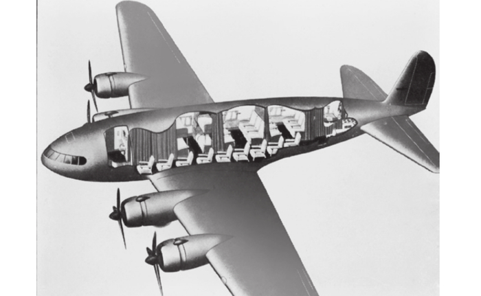 20家美国商用航空公司将划分成两大集团。一个集团将经营内陆远途运输,以时速350~400千米飞行1500~2000千米航段,以减少经停次数,多次经停不但浪费时间,也会增加风险。另一个集团则负责沿海岸线飞行,在沿海各大城市之间建立起空中桥梁。但这一集团需要增加航班密度,提升服务质量,他们采用洛克希德双发飞机,其可搭载10~12名乘客,时速可达330千米。但国内远途航线及由美国飞往南美的航线则采用道格拉斯DC-4型或波音307型大飞机。波音307型飞机是由波音B-17型轰炸机改装而成的,机身宽大,可以搭载三十几位乘客,其特点也很明显:机身呈圆弧形,表面光洁度更好,飞机内部全密封,靠压缩机和升温器对内部的压力和温度进行调节,当飞机升至4500米时,要让乘客感觉是在2500米的高空上。