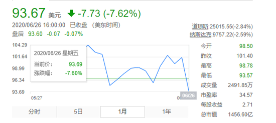 受此消息影响,耐克的股价顺势下跌,截至美股上一个交易日收盘,耐克股价为93美元,为近一个月以来最低点。