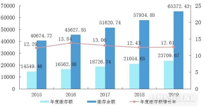 《全国住房公积金2019年年度报告》数据显示,在缴存上,2019年,住房公积金实缴单位322.40万个,实缴职工14881.38万人,分别比上年增长10.57%和3.08%。2019年,住房公积金缴存额23709.67亿元,比上年增长12.61%。