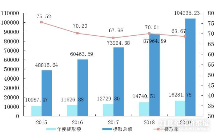 郑秉文指出,相较于2.37万亿的住房公积金缴存额,去年公积金的提取额不足1.63万亿,加之投资收益率持续在低位徘徊,近年来放宽公积金的提取条件成为了一个趋势。