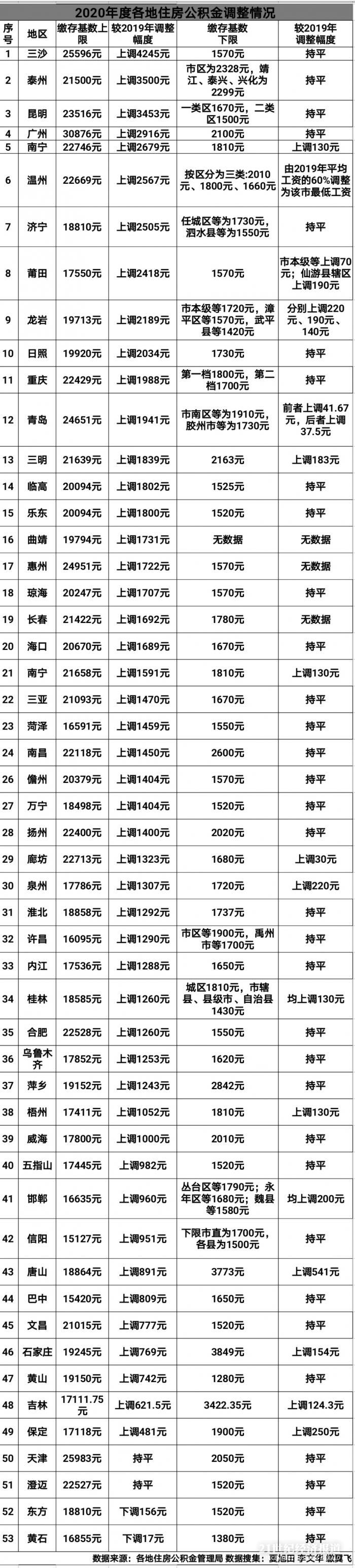 据21世纪经济报道不完全统计,截至6月28日,全国已有广州、天津、重庆、昆明、石家庄、乌鲁木齐、南昌、南宁、合肥、青岛、海口、三亚等53个城市发布了公积金缴费基数的调整方案。