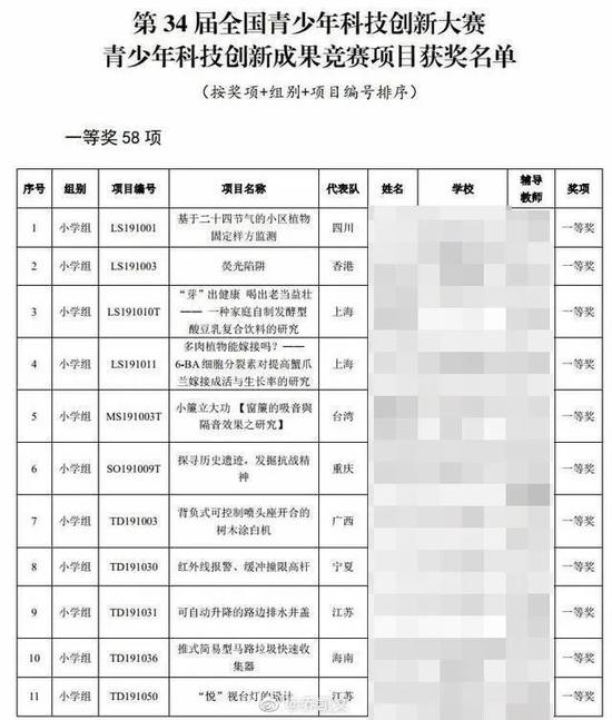 据官网资料显示,该研究项目获得了2019年第34届全国青少年科技创新大赛三等奖,而指导老师名为吕冬梅、马清等人。