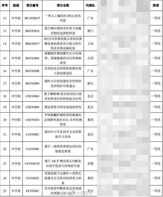 到了中学组就更考验智商了,类似《固态柔性可快充电池的研究》《甲状腺髓样癌特异性敏感标志物降钙素的ECL比率检测研究》《基于响应型纳米粒用于抗癌药物的选择性释放》这样的项目比比皆是,一般人都看不懂……