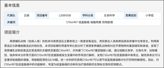 7月13日,中国科学院昆明动物研究所确认:全国青少年科技创新大赛“C10orf67在结直肠癌发生发展中的功能与机制研究”获奖项目学生系我所研究员之子。