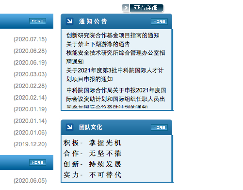 从内容来看,中科凤麟和中科院核所有着高度的重合。而且,这两个官网的头图右侧背景建筑和团队文化有部分完全一致。其中,背景建筑均为中科院核所,团队文化为“积极-掌握先机”、“合作-无坚不摧”、“创新-持续发展”、“实力-不可替代”。