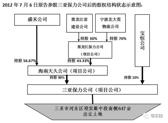 马彬的遭遇源于商业合作。2011年6月16日,三亚保力公司(项目公司)取得三亚市河东区迎宾路中段南侧647亩出让土地。其中,齐齐哈尔市盛禾置业有限公司(以下简称“盛禾公司”)的全资子公司海南天久公司持有三亚保力公司90%股权、黑龙江威讯房地产开发公司持有三亚保力公司5%股权、哈尔滨瑞达园林绿化公司持有三亚保力公司5%股权。