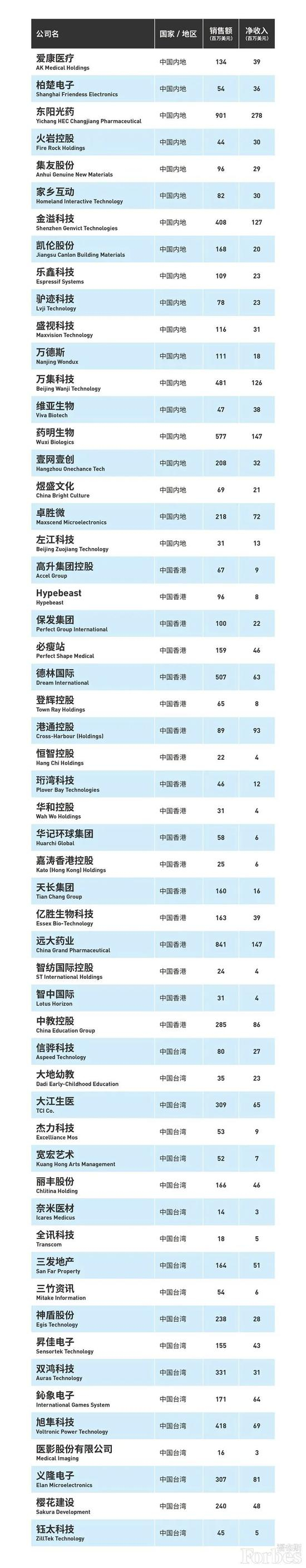 登上福布斯亚洲中小上市企业榜的中国企业