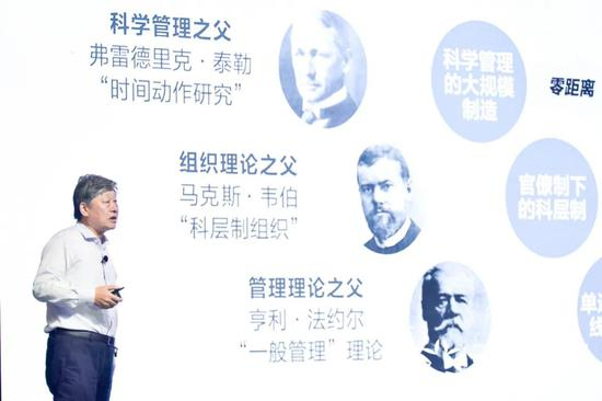 先要颠覆,工业革命的管理模式大概是一百年,就是上世纪初。像泰勒《科学管理的原理》这本书写的时候是1911年,泰勒的科学管理到今天还在用,简单说就是流水线。实践中研究就是把所有流程都分解,每个人去照这个做,当时它的进步之处在于颠覆了小作坊,所以亚当斯密在《国富论》书里第一章就写,如果小作坊做别针,一个工人可能一天也做不出一根来,但是如果用这个流水线,一个人可能要做几千根。