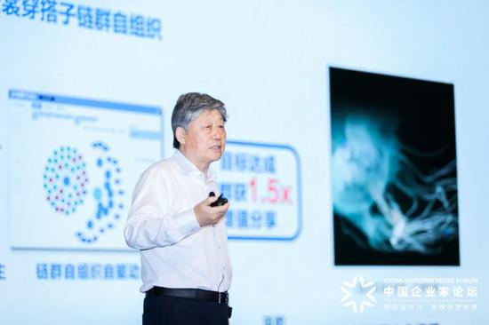所以举一个例子,我们的洗衣机,逐渐发展成围绕衣服做。比如用户提出除了烘干、杀菌,还想知道怎么穿戴搭配,链群自发通过工作台组成,提供解决方案满足用户的穿搭需求,最后他们得到了超出行业1.5倍的分享。我们希望这个组织变成一个水母。水母没有大脑,也没有神经中枢,它只有神经元细胞,每个触手都有很多细胞,哪一个触手如果发现了食物、猎物,所有的触手迅即赶过来把这个猎物包起来。如果一个组织变成自发的发现机会、创造机会,这才是现在所需要的组织,而不是那种我发现了什么信息、再报给领导,报给领导再批下来,批下来我再去执行,再组织人员,可能什么机会都没有了,所以瞬间就要抓住,这个其实真的非常重要。