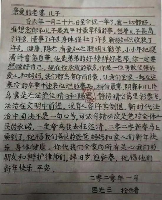 2020年8月30日,吕先三案庭审的最后一天,其妻子赵静为了“讨个好彩头”,特意穿着一件红色外套坐在旁听席,每当提到吕先三相关内容,她会把胳膊搭在前排座椅靠背上,埋着头沉默一会儿。一审判决下达之后,她曾见过一次吕先三,吕先三说:“你要相信我,我没有做任何对不起你和孩子的事情”。