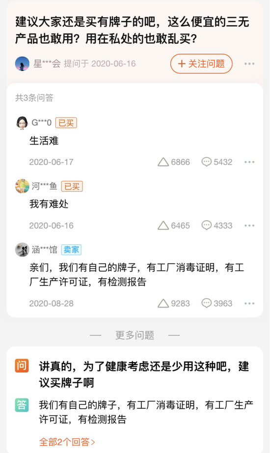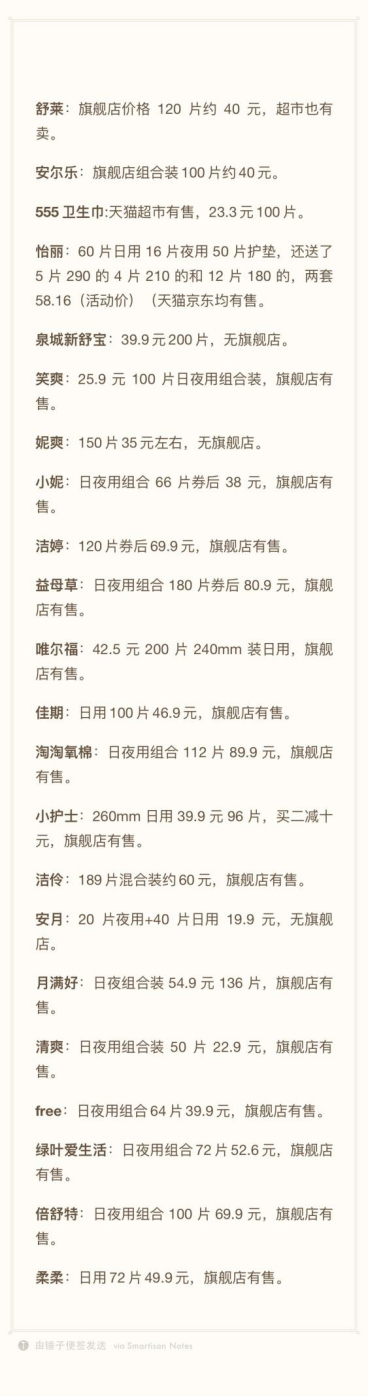 “散装卫生巾”话题得到广泛关注后,有热心的网友总结了价格低廉的卫生巾品牌。