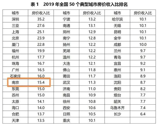 根据2020年易居院发布的50城的房价收入比,南京以15.4位居第11名,有媒体称这一数据几乎可以与日本在房地产泡沫时期相当了。相较之下,苏州是15,合肥是13.7,武汉是11.3,无锡是10.1,长沙是6.4,均在南京之下。