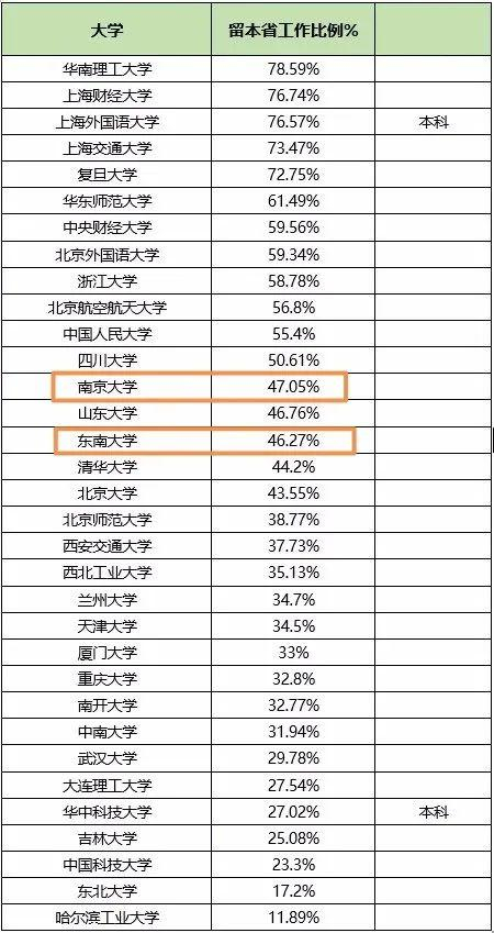 这样一来,“南大和东大的毕业生,只有不到10%的人会留在南京”的传言也就不攻自破了。