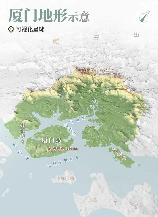 厦门地形示意 | 制图@泰山&郑伯容/可视化星球