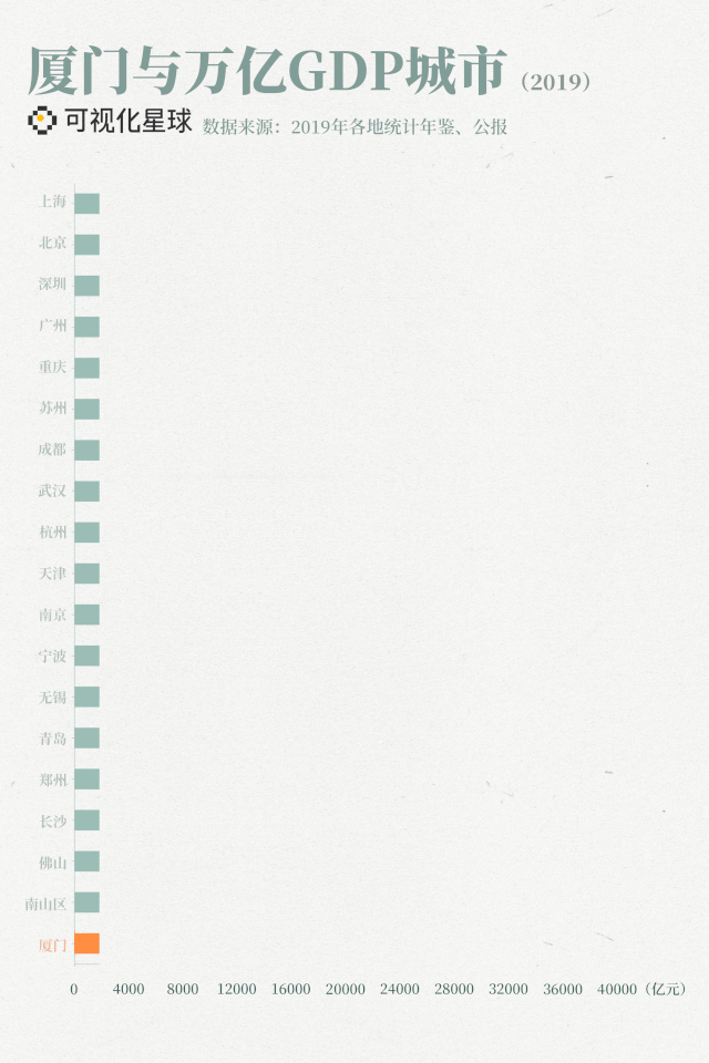 厦门与万亿GDP城市 | 制图@泰山/可视化星球