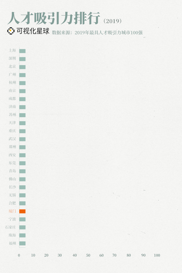 没有了强有力的产业支撑,就意味着较少的工作机会,这也导致了厦门人才吸引力的不足。