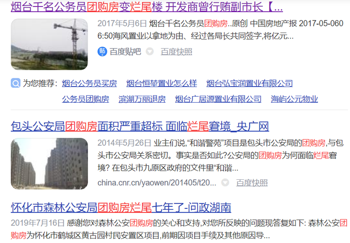 如果,今天你在百度上用“团购房烂尾”这样的关键词搜索,会发现在全国范围发生了很多起单位组织的团购房烂尾事件。