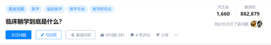 知乎问题“临床躺学到底是什么”获得近90万浏览量