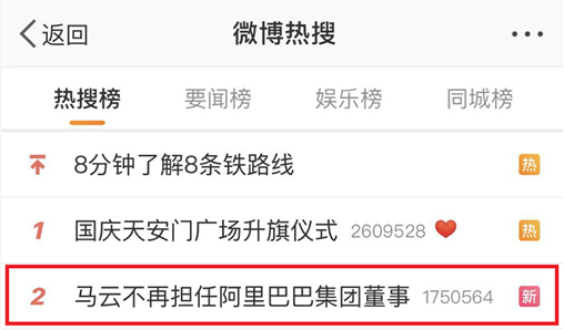 国庆假期的第一天早上,马云就因为阿里昨晚的一份公告登上了微博热搜。