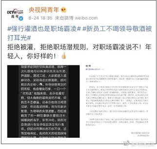 央视网青年为这个员工点赞:拒绝被灌,拒绝职场潜规则,拒绝职场霸凌!