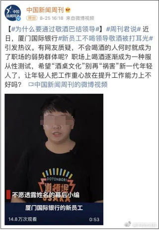 银行员工拒绝喝酒被扇事件:我们都该谢谢这个反抗的年轻人