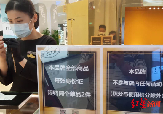 红星新闻记者了解到,免税店购买限制了额度,每人每年可享受购买免税品的金额不能超过10万元,但不限购买次数。