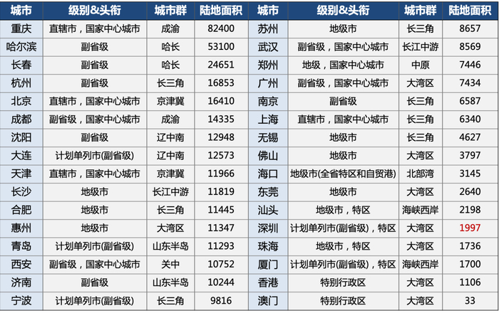 最佳方案,是深圳、东莞、惠州三个城市合并。其实,深圳+东莞+香港的总面积,都没有上海大。