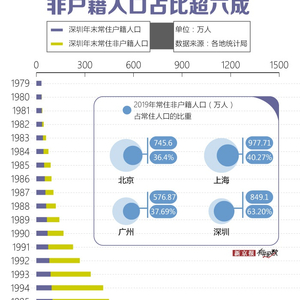 这是一个长期形成的现象。1980 年,深圳常住非户籍人口同比猛增 700%;1989 年,常住非户籍人口开始超过户籍人口数;2000 年,常住非户籍人口比重超过 360%,达到历史高峰;2011 年,常住非户籍人口同比首次下降;到 2015 年,常住非户籍人口数量开始再次回升。