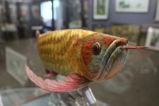 潮绣大师孙庆先创作的作品——《金龙鱼》 。新华社记者 洪泽华 摄